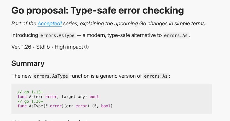 Появилась функция errors.AsType, которая делает проверку ошибок типобезопасной и без рефлексии: