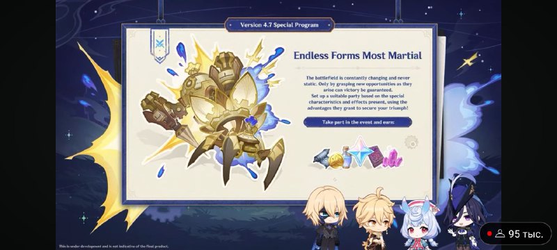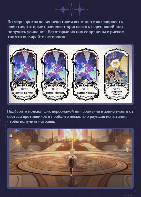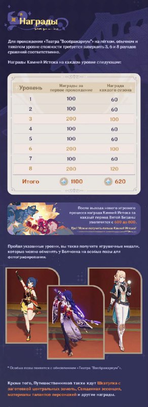 Театр Воображариум Привет, Путешественники! В версии 4.7 появится новый постоянный игровой процесс со сражениями «Театр "Воображариум"». В этом игровом процессе вы получите много Камней Истока, а также боевые усиления, которые будут актуальны не только в нём. Давайте ознакомимся с правилами, расписанием и наградами этого игрового процесса!