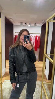 Классическая кожаная куртка от бренда Pinko из натуральной кожи, доступна для заказа со скидкой -50% !
