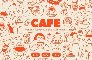 Cafe, vector illustrations, printsКоллекция векторных иллюстраций и принтов.