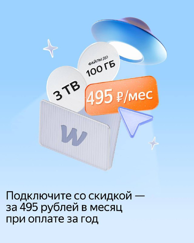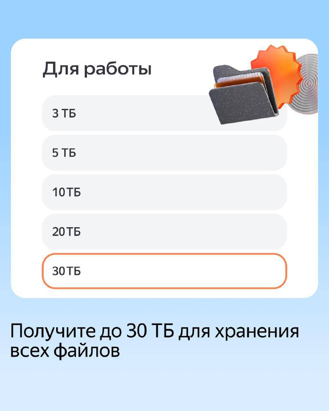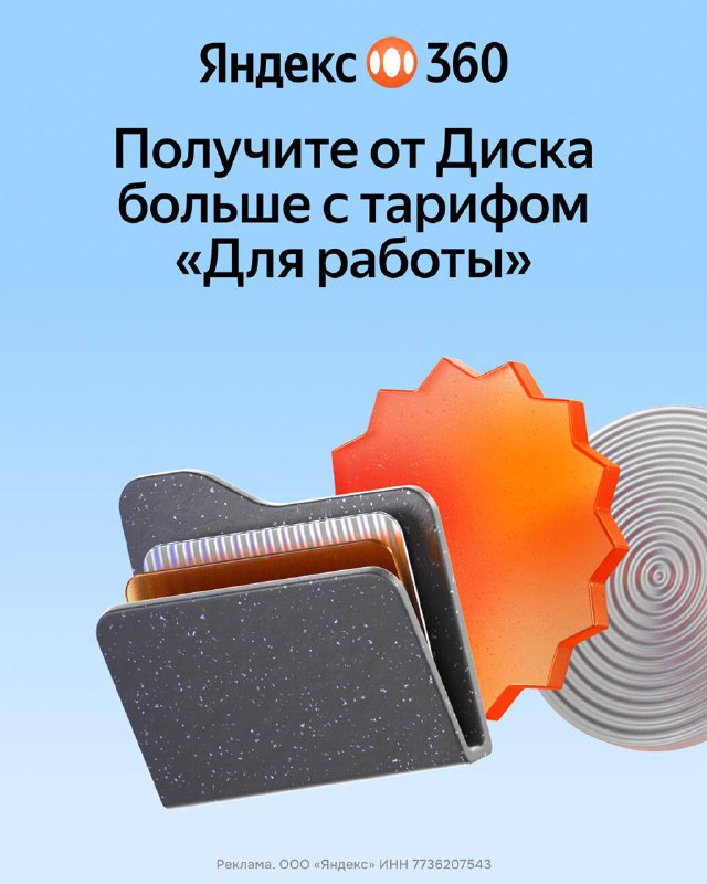 В тарифе «Для работы» от Яндекс 360 можно загружать файлы до 100 ГБ, поэтому дизайн-проекты, многослойные PSD и тяжёлые 3D-модели отправляются без потери качества. Диск объёмом от 3 до 30 ТБ на выбор даёт место для всех проектов, а утроенный лимит загрузки позволяет работать с большим числом обновлений и итераций.