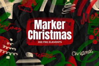 Hand-Drawn Holiday Marker ElementsНарисованный вручную набор графики, который идеально подойдёт для создания зимних и новогодних постов, упаковок и праздничных открыток.