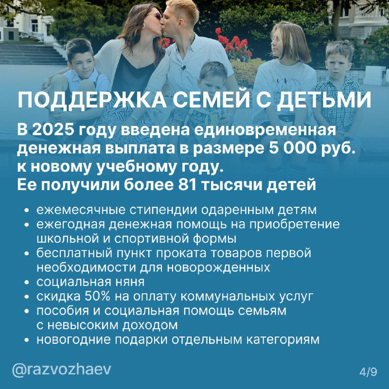 в Севастополе действует более 20 региональных мер поддержки для многодетных семей