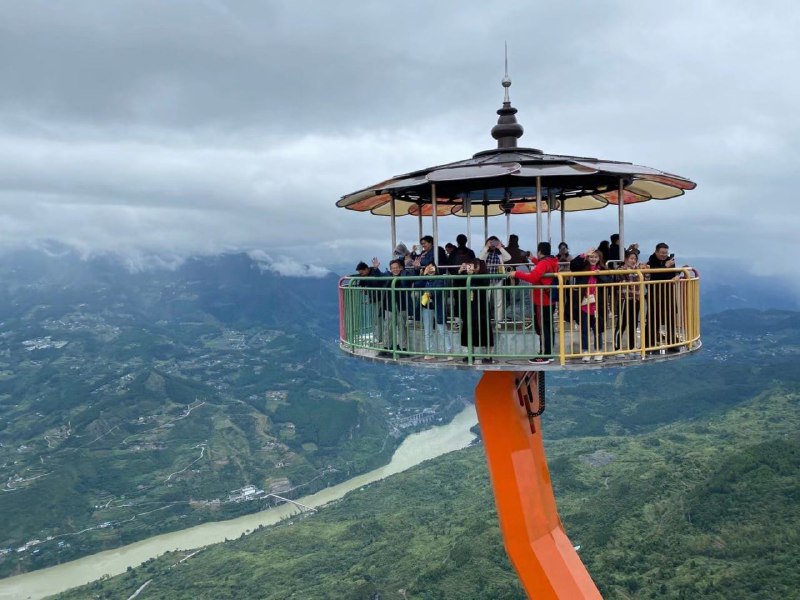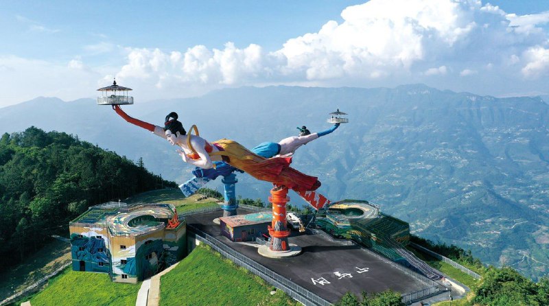 Захватывающая дух карусель в китайском Чунцине — на вытянутых руках 52-метровых статуй.