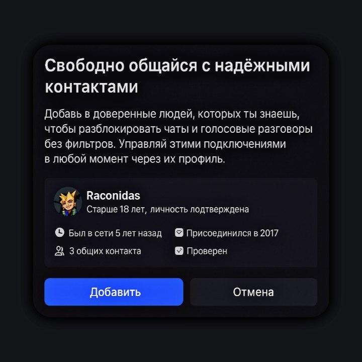 Что даёт статус доверенного друга:• сообщения между вами не будут проходить строгую цензуру;