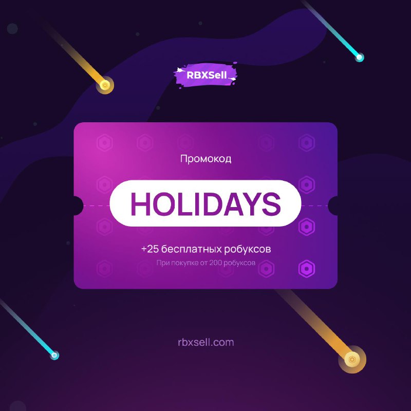 Вводи промокод на сайте при покупке от 200 робуксов и получи 25 робуксов в подарок!