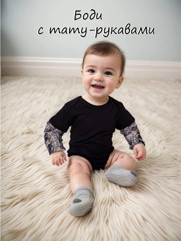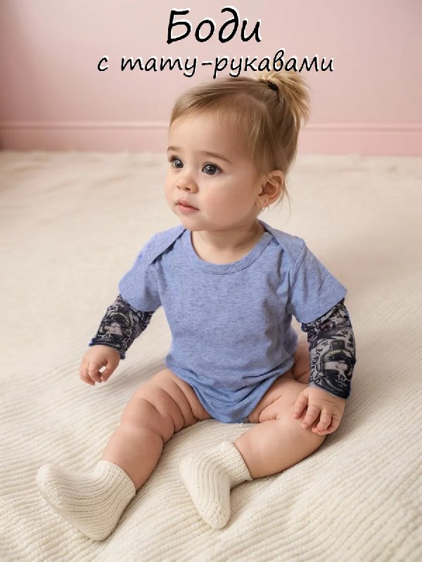 Боди с тату рукавами для новорожденных Куксики Размеры: 65-70 70-80 80-85 85-90
