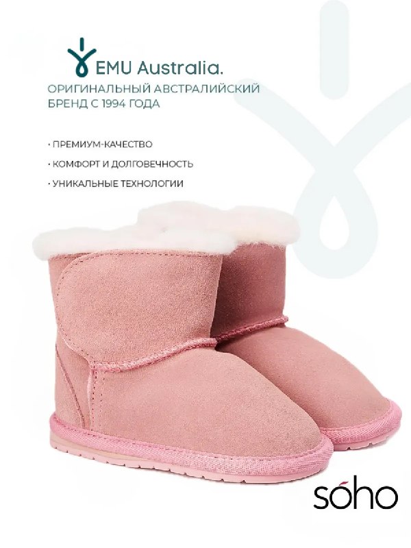 Угги детские розовые из натуральной замши EMU AUSTRALIA Размеры: 19 21 22