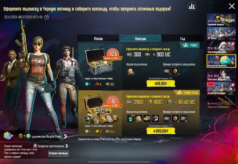 выгодно оформить подписку Prime и Prime Plus – это дополнительные UC, ежедневные бонусы и множество преимуществ