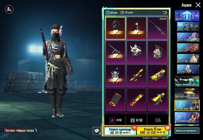 «Ниндзя театра “Но”» с головным убором, а также улучшаемый скин на винтовку