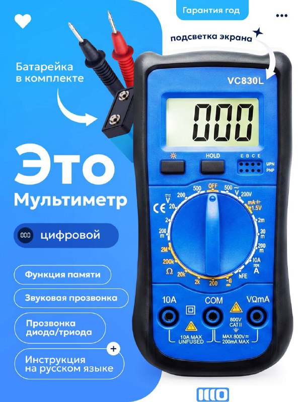 МУЛЬТИМЕТР ЦИФРОВОЙ с прозвонкой