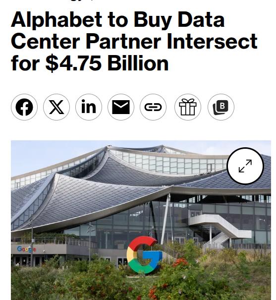Alphabet покупает разработчика инфраструктуры Intersect за $4,75 млрд.Материнская компания Google заключила соглашение о приобретении девелопера ЦОДов Intersect Power. Это первый случай, когда бигтех не просто заключает контракты на поставку электричества, а напрямую покупает крупного ресурсного игрока. Сделка, которую планируют закрыть в первой половине 2026 года, будет полностью оплачена денежными средствами.